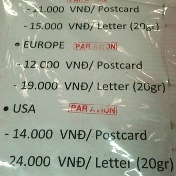 1、邮寄明信片回中国邮费是8000越南盾,邮局外普通一张明信片5000盾,稍有设计的卡片是30000-80000盾一张,所以不如在书店或范老五街买些精美的明信片拿来邮寄吧。