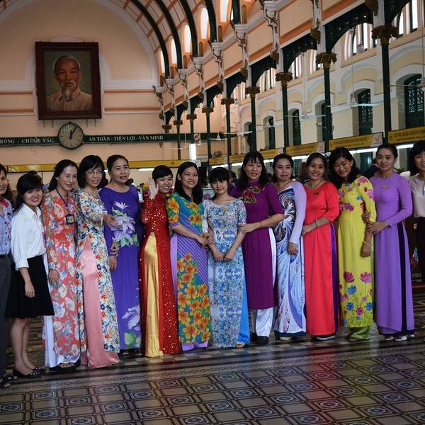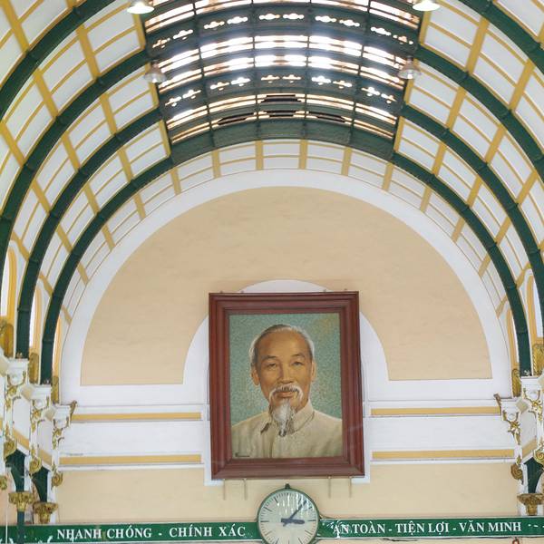 走进邮局,瞬间就有点被震撼,隧道的延伸感直达中央大幅的胡志明画像,包住排水管绿色铁条装饰则勾勒出线条感,穹顶、花窗、吊灯等元素尽体现哥特式建筑风格。门口两侧的墙壁上展示的是越南的旧地图,下方是装扮成红色电话亭的ATM取款机,可以直接通过银联取越南盾。邮局有纪念品店,可以挑选明信片和手信。纪念品店的明信片价格一般是0.5万 VND/张,邮费1.1万VND/张。如果对明信片没有要求,只想体验下寄回家的感觉,可以到卖MISS VIETNAM香水的展示柜领取免费的明信片。如果有较高要求,其实邮局大厅内卖的明信片可选性不多,质量也良莠不齐,建议提前在其他地方买好或者到邮局内的纪念品店仔细筛选,再寄;里面有桌椅,可以悠闲地坐着慢慢填写。另外,想收集邮戳,就在进门右手边的第一个柜台向工作人员索要当日日戳即可,他会把邮戳交给你,让游客亲手盖。还有一点,寄明信片时,只需在抬头写“TO XX CITY, CHINA”,然后用中文将地址写清楚完整便可。对于女生来说,到了邮局除了寄明信片,还可以购买西贡小姐香水。瓶身很有意思,是身着奥戴、头戴斗笠的女子造型。中心邮局与西贡王公圣母教堂相邻,逛完便可直接去看教堂。 展开