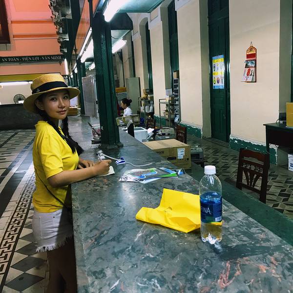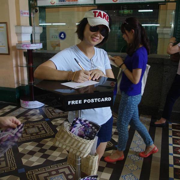 中部的柜台可以买各种各样的越南明信片,邮票,纪念品等等。很多来自世界各地的游人在这里写明信片(但是我并不确定能不能寄回国)明信片一般是5000VND一张 整合人民币一块五左右。