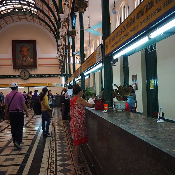 实用 ...的建筑也很有特色,如果到胡志明想寄送明信片回国,建议找西贡中心邮局走一趟,这里非常值得到此一游西贡中心邮局在越南胡志明市中心,在圣母大教堂的正对面,邮局门口很大,正门上有一个大大的钟,进去邮局要上楼梯。西贡中心邮局比国内的邮局要大,毕竟这里的历史很悠久。走进邮局,左边是办理邮局的基本业务,...西贡中心邮局在越南胡志明市中心,在圣母大教堂的正对面,邮局门口很大,正门上有一个大大的钟,进去邮局要上楼梯。西贡中心邮局比国内的邮局要大,毕竟这里的历史很悠久。走进邮局,左边是办理邮局的基本业务,包括包裹、文件的寄送业务,还有汇款业务,右边是卖越南特色的纪念品。买完可以直接寄送。中间是销售员销售香水。还有免费的明信片派发。邮局里面很大,就像一个古老火车站的候车站的感觉,而且里面的人很多,邮局中间位置有几张桌子,但是没有凳子,所以只能站着填写,左面上没有胶水提供,所以只能自己想办法解决。总体来说,西贡中心邮局因为有它的历史,并且本身的建筑也很有特色,如果到胡志明想寄送明信片回国,建议找西贡中心邮局走一趟,这里非常值得到此一游。 展开