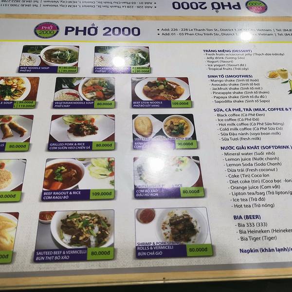 来越南的第一顿饭当然是吃最有名的越南米粉啦,越南米粉中,非常出名的便是PHO 2000。这家店因为克林顿曾经去过,所有在当地很出名,店内还有克林顿访越时在这家店留下的照片,主打是牛肉河粉,这家店的价格比当...来越南的第一顿饭当然是吃最有名的越南米粉啦,越南米粉中,非常出名的便是PHO 2000。这家店因为克林顿曾经去过,所有在当地很出名,店内还有克林顿访越时在这家店留下的照片,主打是牛肉河粉,这家店的价格比当地小店的价格要稍微贵一些,我们是清晨一大早来,店内客人不多,据网上说来越南吃米粉都会来这家店打卡,所以高峰时间段人会比较多。我们点了一份牛肉粉一份鸡肉粉,汤底纯厚,粉质爽滑,味道非常不错,尤其是汤底。