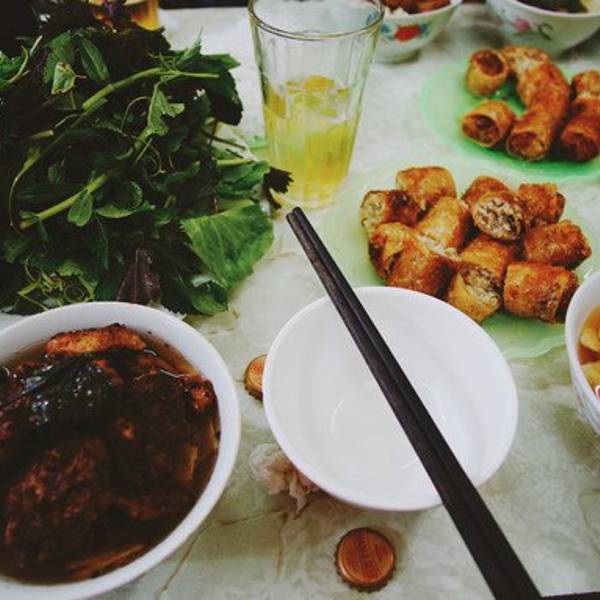 吃法是把粉放在那碗酸甜的萝卜片汤里面,至于那盘不知道什么品种的菜,我看越南人会把菜叶摘下来放在米粉一起吃,我没动过那盘菜。。。吃不惯。我觉得总体一般,食肉兽比较满意那个烤猪肉,但酸甜的米粉我吃不惯,春卷味道也没特点。