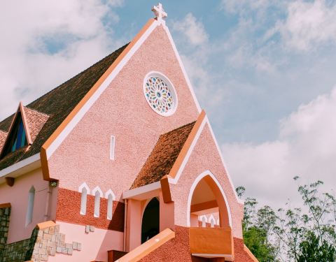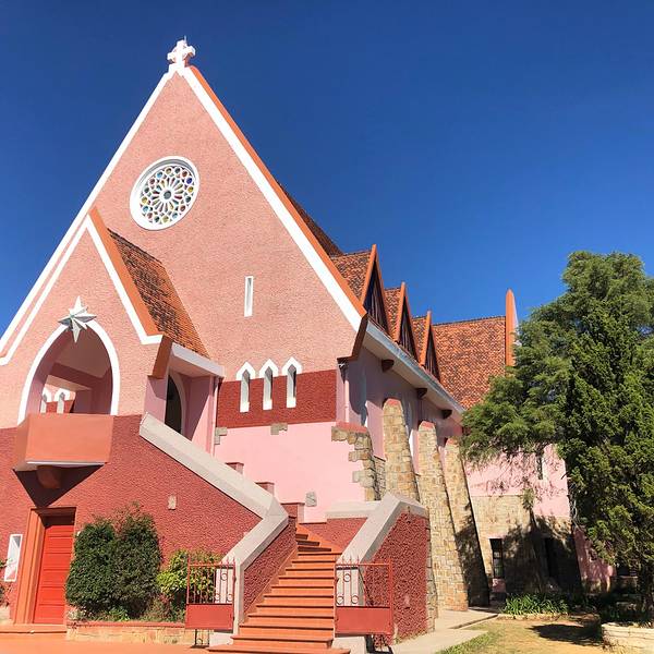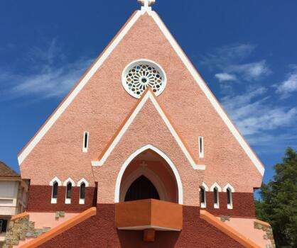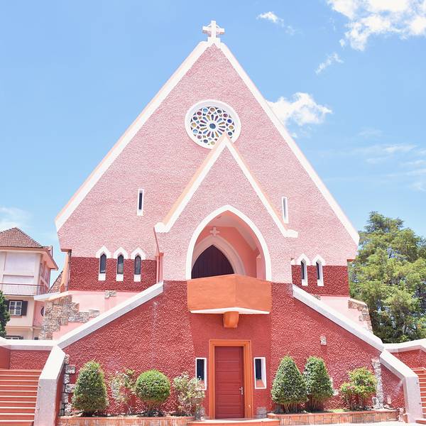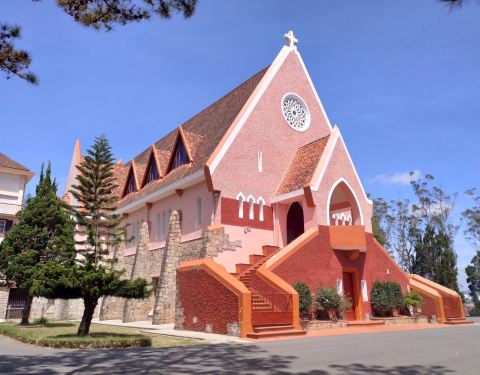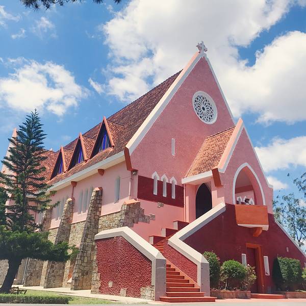 【详情】大叻玛丽修道院(Domaine de Marie Church)建于20世纪30年代,教堂本来没有什么历史文物价值,但是它艳丽的粉红色造型十分可爱,所以成了旅游景点,拍照圣地。这里有为孤儿、无家可归者和残疾儿童开设的孤儿院、幼儿园和小学,教堂后面的屋内有修女们在出售旅游商品以用作慈善事业。
