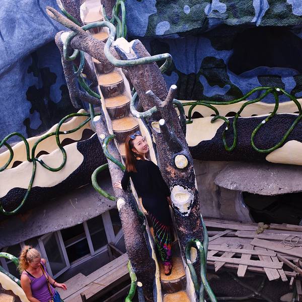 现实版爱丽丝梦游仙境离芽庄不远的大叻,有一座越南前总统的女儿设计的客栈,叫做“疯狂屋”。因为其魔幻的造型,有趣的设计,已经成为游客们趋之若鹜的打卡地。游走其中仿佛来到了童话世界。