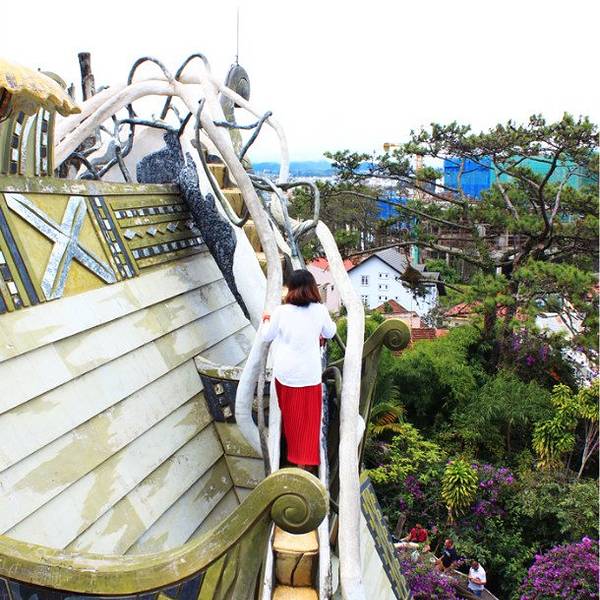 实用 在房子的最高处,风景会更加特别,但是有恐高症的需要小心一点。房子外形独特,像一个树干一样大叻的疯狂屋,是我越南之行最喜欢的一个景点之一。之前看了很多关于crazy house的图片,对这个酒店充满了好奇。