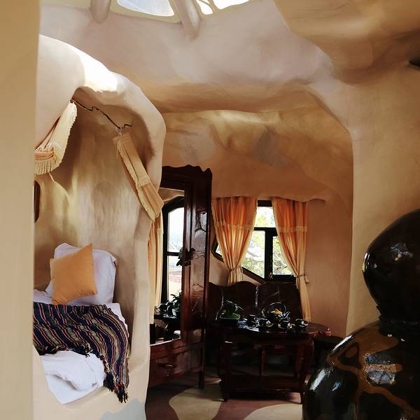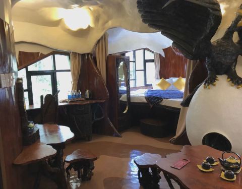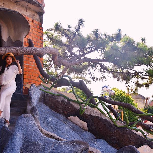 The Crazy House的设计者是越南前总统的女儿,顶层房间设有玻璃天窗,夜晚可以仰望繁星点点。外形很像一棵大树,需要通过巨大的树洞、踩着木桩阶梯走进其中。据说有蜘蛛房、老虎房、狗熊房等各种风格迥异的房间。供游客参观时间8:30-19:00,门票40000越南盾。不过住在这里可能很早就会被游人吵醒,但胜在设计感强。这边有个地方在施工翻修,无论是游人还是住客都要注意安全。