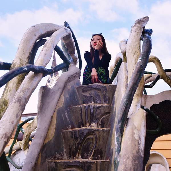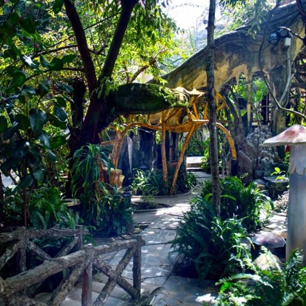 其实这里也是一个酒店,有各式各样的主题屋,一晚大约200+的样子,可现在游客颇多,早上睡觉也会被游客吵醒,所以建议大家还是不考虑这里的住宿了吧!最喜欢这里出其不意的“树洞”,随时可以探出头来,kacha一张照片其实这里的树叶不是真的树,而是用某些建筑材料混合搭建的,欣赏设计师的天马行空,创意无极限,冷冷的建筑世界其实也可以做的五光十色这里很多阶梯都很陡很窄,大家一定要注意安全~crazy house附近有不少洋房餐厅,都挺不错的,大家出来可以去周围吃个午饭,然后让店家叫车去下个地方 展开