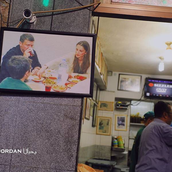 尽管就像是个路边摊,号称安曼第一美食,本地人还是外地游客都会来这里。据说国王也会来这家餐厅。吃的东西很当地,falafel三明治,炸泥豆丸,falafel沙拉,配上阿拉伯大饼,还有mint tea。口味真的很好,吃了这一次后,我们便决定第二天还会来这。falafel Sandwiches炸泥豆丸两个人饱餐一顿,也不过几块钱而已。正经的国民美食。在这里总会看到约旦国王,前任国王和国王儿子的照片。店里很多伙计会和你聊天,等你吃完了还不忘拉着你合个影。
