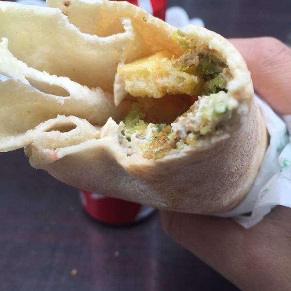 ...体验了当地法拉菲等一票特色美食,第一道菜俺们都不晓得怎么吃,邻桌的兄弟无比仔细的教我们,好暖心