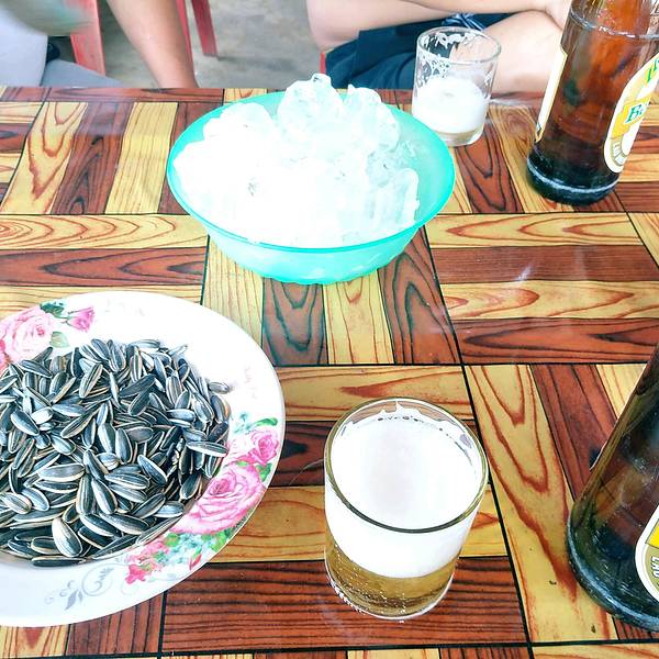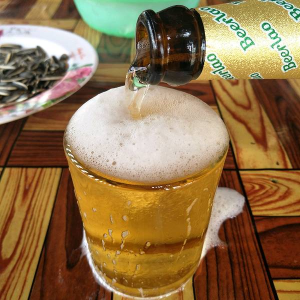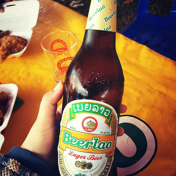 我们喝到一半主动叫了两个小姑娘过来,艰难的沟通一番才知道她们只有十六岁,不过脾气性格都很好,语言不通就乐呵呵的看我我们聊天,不时的斟满我们的酒杯,如图,BeerLao加冰真的很好喝。然后我们的酒局是以什么方式结束的呢?对,因为我的不胜酒力,两瓶啤酒直接把我撂倒,小哥一路带我回去我都在闭着眼睛默默念叨,这酒咋这么大劲儿呢?再也不喝了,意识半清醒身体全瘫痪的我也听小哥不停念叨抓紧他,一会儿走错路了还用一口地道的陕西腔儿念叨我咋这么笨呢,哈哈好可爱的。