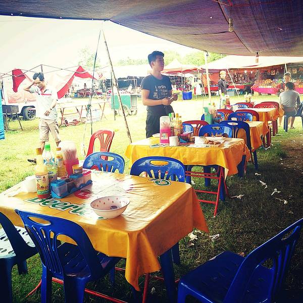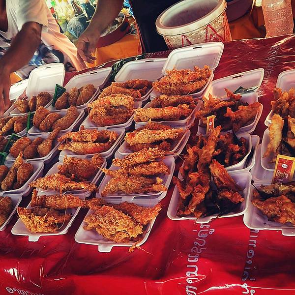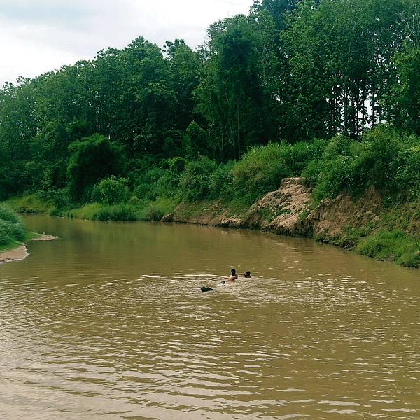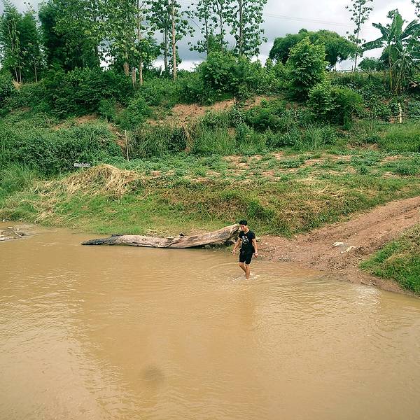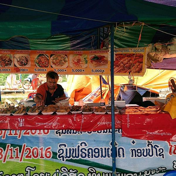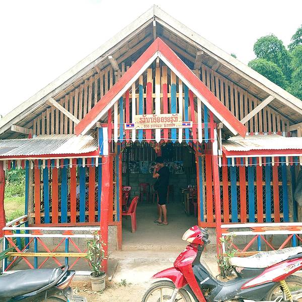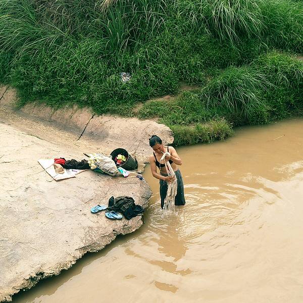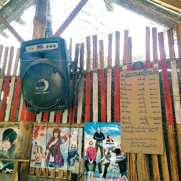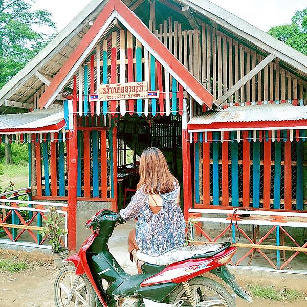 要说市场,首先是地道,其次是物品还算丰富,我们停好摩托来到一家炸鸡店,点了些小吃和很有名的老挝啤酒,关于这个炸鸡的味道,不多评价了,只吃了两口,我们就都放下了,两个饿到不行大男人也硬生生的没吃饱。吃罢市场小转一圈,于我而言没什么吸引力,遂返程,路上遇一妇女在河边洗澡洗衣,遇一大叔在河里洗车,遇多个黑黢黢的娃娃们自在的在河水里翻来翻去,逗留了一小会儿最后我们停在一还算特别的小酒馆,二位跟我讲如果我不在,陪酒的小姑娘立马过来。