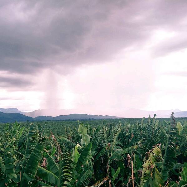 整个人都不好了,小哥找来纸盒铺在香蕉地,不停的给我扇风敷冷毛巾,(啊哦,此处要说下后来看自己被...这天一早被大雨声叫醒,刚过六点小哥来敲门,因为必须要走了,赶去香蕉地。一下楼见了大雨犯了愁,没有雨伞,如何去停车场都是个问题。俩人把唯一一把伞留给我,自己头顶着纸盒箱跑进了大雨中,宝宝有几年没淋过...这天一早被大雨声叫醒,刚过六点小哥来敲门,因为必须要走了,赶去香蕉地。一下楼见了大雨犯了愁,没有雨伞,如何去停车场都是个问题。俩人把唯一一把伞留给我,自己头顶着纸盒箱跑进了大雨中,宝宝有几年没淋过雨了,全身湿个精透。顶着大雨行驶几十公里,终于到达目的地,一片几千亩的香蕉林,长这么大第一次亲眼见到香蕉的生长地。
