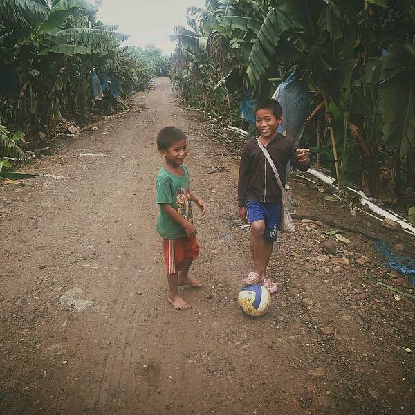 这里又很多老挝的小孩子们,都晒得很黑,他们在父母忙时,就在一边踢球,嘴里流利的老挝话,根本理解不了在说什么。