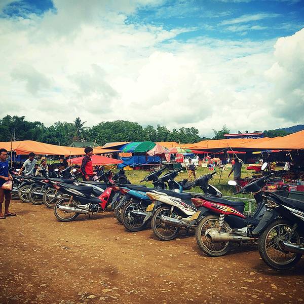 小哥跟我讲孩子们很盼望他们过来,因为经常会带些好吃的,这次匆忙什么都没有,我翻了下自己的背包,只翻出一块士力架,给了两个小孩高兴的跑开了。片刻过后小哥安排好手里的活儿,准备带我骑摩托去镇上,兴奋的不要不要的,于是跟当地工人借了两台,骑着摩托兜着风,热风,去小镇上的市场准备好好逛逛。