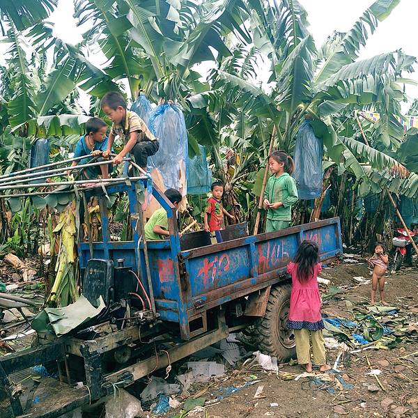 雨后路上的风景看起来更美,二十分钟左右我们七扭八拐的出了香蕉林,到达市场,一路上见很多人围成一堆儿,坐在家门口,看起来还蛮悠闲的。我们路过的时候都不约而同的望向我们,小哥逗我说他们从来没见过像你长的这样白的,逗得我哈哈大笑,伸出手来跟大家打招呼。