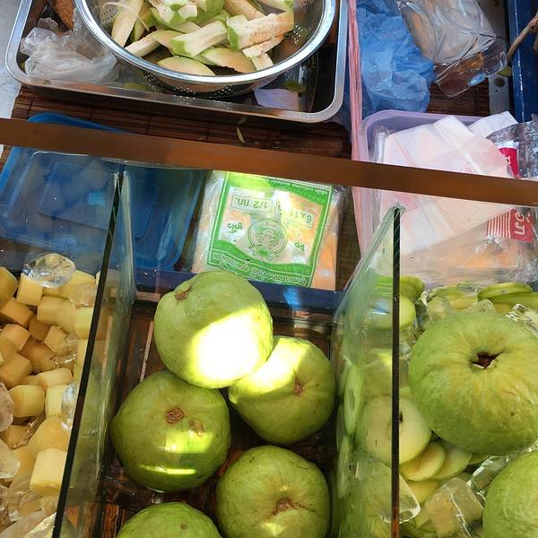 一路上有很多卖水果的小摊,我去买了这个,我没吃过:后来发了朋友圈,有人说这叫番石榴?不好吃不好吃不好吃,硬死了,这个10,000kep一袋。