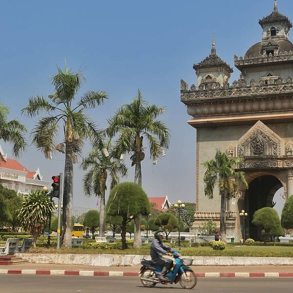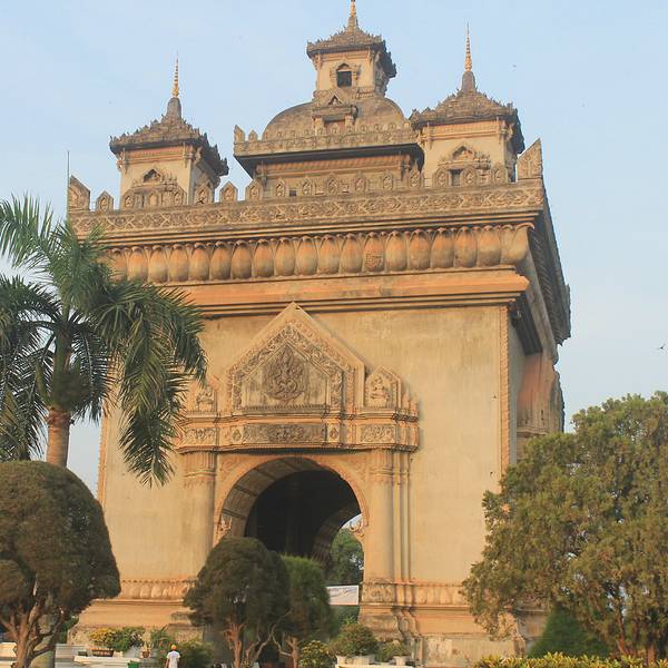 万象的地标建筑,融合法式风格与老挝元素。登顶可俯瞰城市全景,远处湄公河蜿蜒流淌,近处佛寺与法式建筑交相辉映,别具韵味。