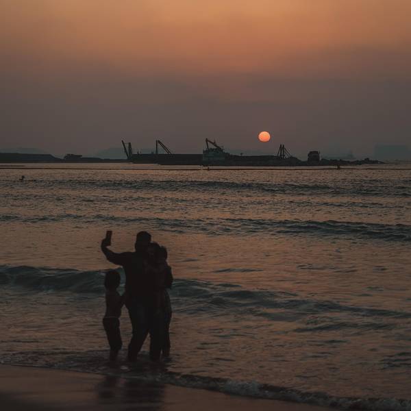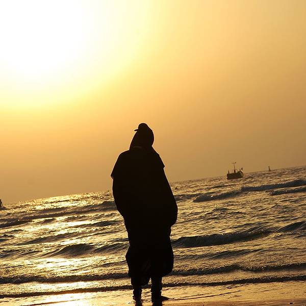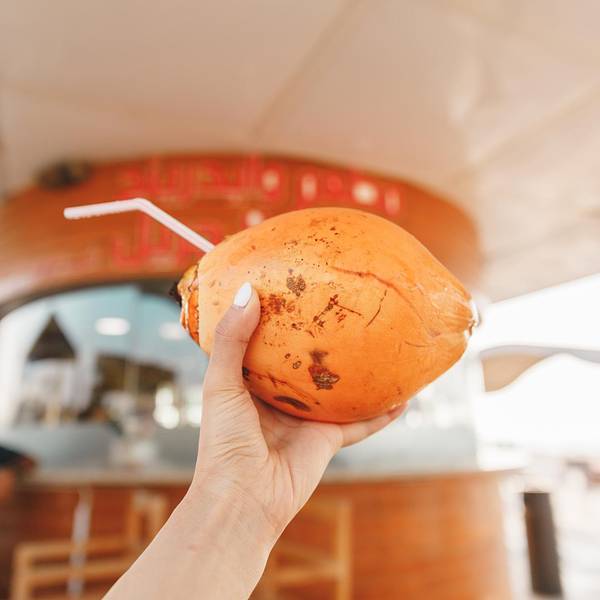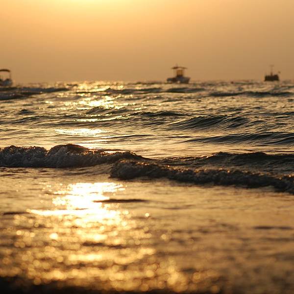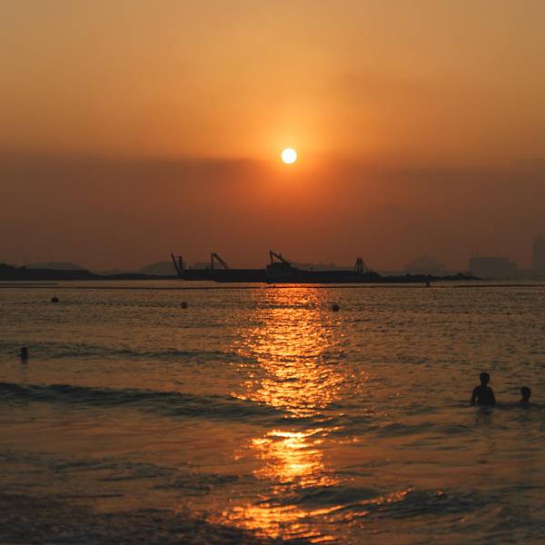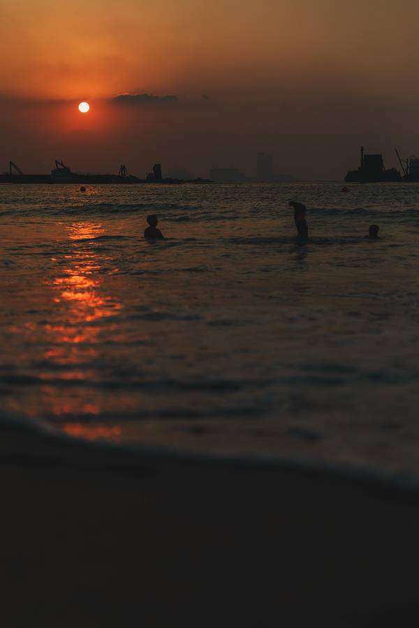 被阳光一路炙烤着,我终于来到了海边。迪拜的沙滩称不上优质,但也足够细腻不硌脚。在“炎热”的冬日里,来游游泳还是不错的。可惜的是,沙滩上有施工建筑,严重破坏了观赏帆船酒店的美观性。我来到沙滩上唯一的售卖亭,想买个椰子降降暑,一问价格20迪拉姆,接近人民币40元,这物价差点把我吓退。我又问了冰淇淋的价格,也是20迪拉姆,我思索了一番,觉得还是椰子解渴,更划算。为了犒劳一下走得满头大汗的自己,狠狠心就买了。坐在阴凉处,喝着椰子,等待落日。傍晚5点,太阳开始下沉,我走到沙滩上,支起三脚架,开始享受落日时光。