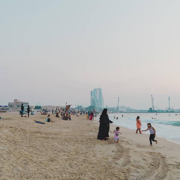 我仿佛是这里唯一一个拿着相机的游客,但是幸好已经有了2天的经历,在镜头前摆好姿势不动,也不会在人群中显得尴尬了。在这里,我看到很多穿着黑袍的妇女带着孩子们来玩沙子。来沙滩却还把自己包裹得严严实实,这种景象,也只有在迪拜能看见了吧。 展开