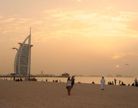 一直到帆船酒店 Burj Al Arab北侧的海滩),