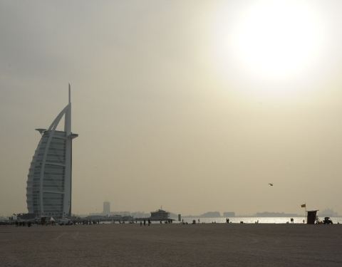 也是一个能看见帆船酒店的海滩。坐在沙漠里看海,