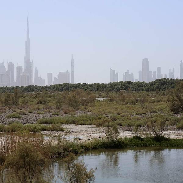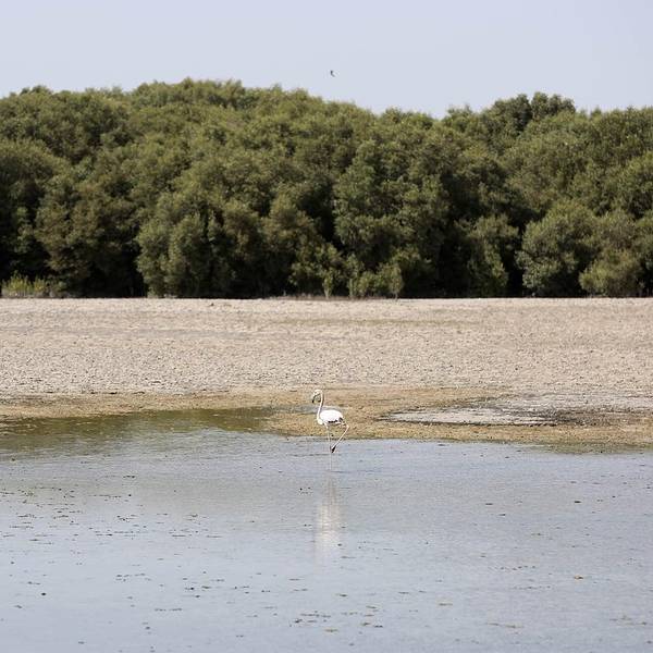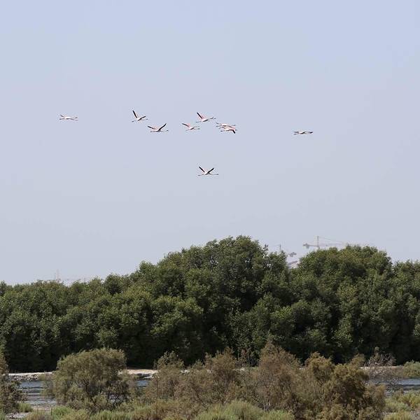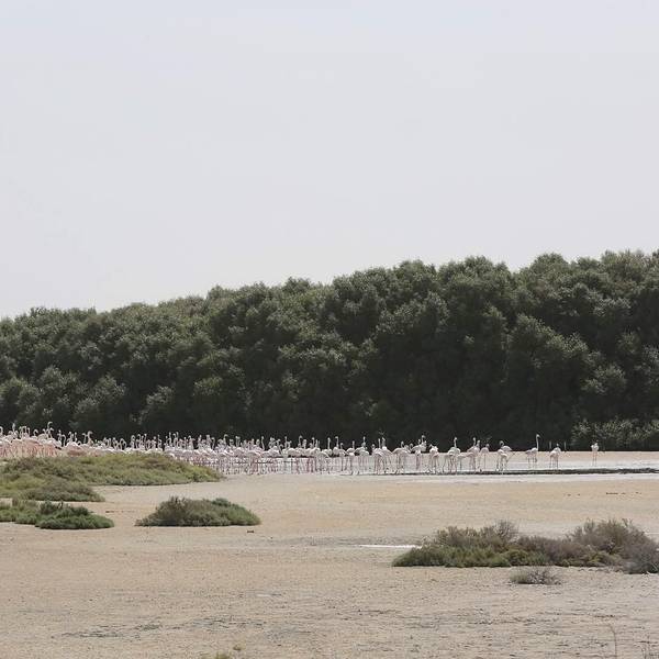 在迪拜河尽头的湿地里,数千只火烈鸟在这里生活。
