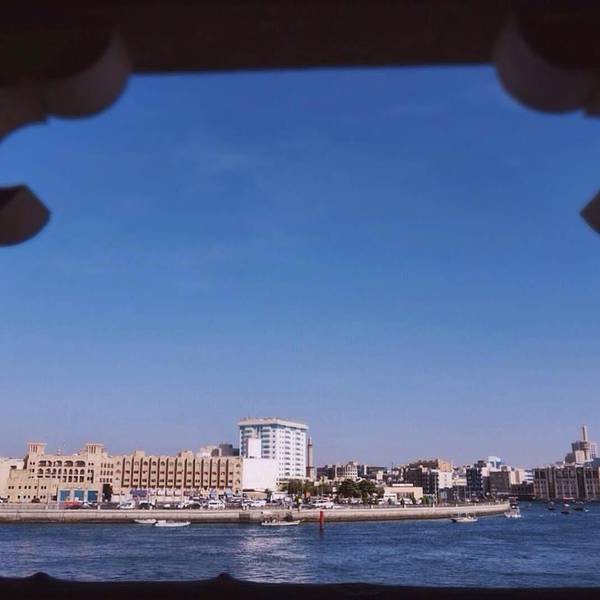 官邸内部,能看得到传统的风塔。小院内洋溢着浓郁的阿拉伯风情。从官邸二楼看到的迪拜河湾。