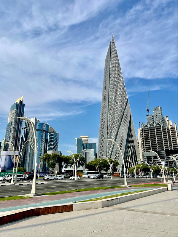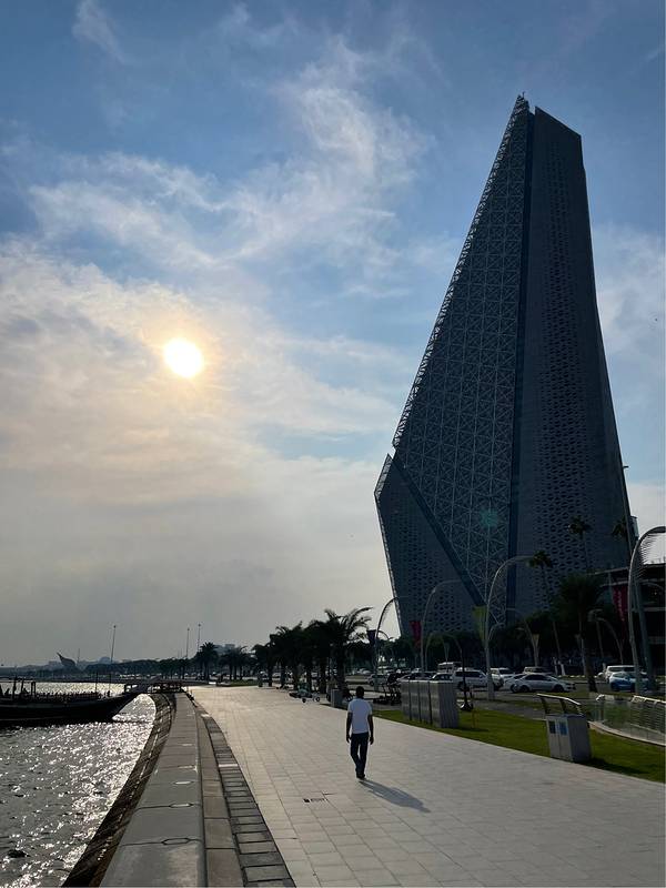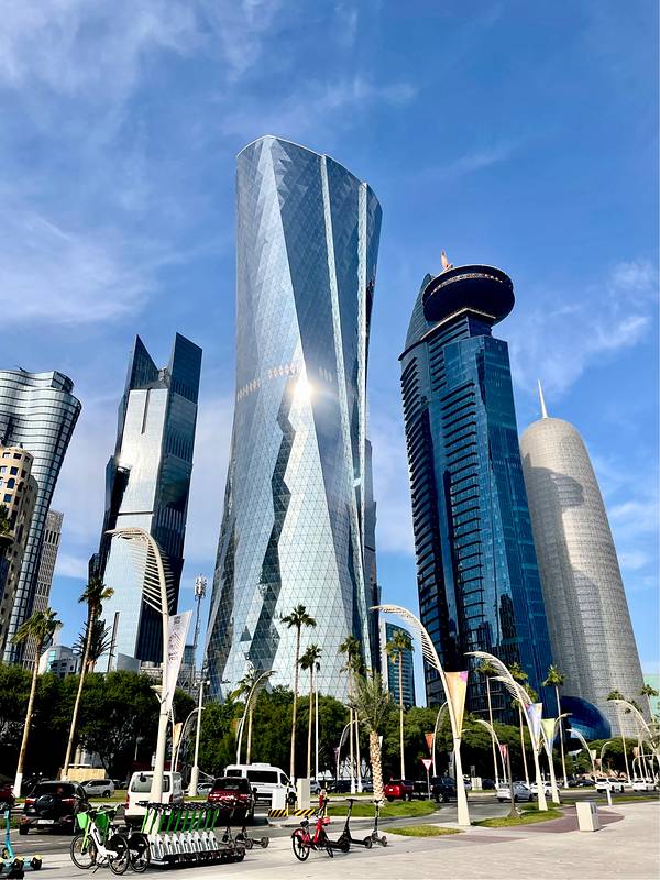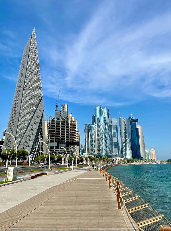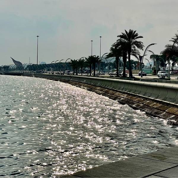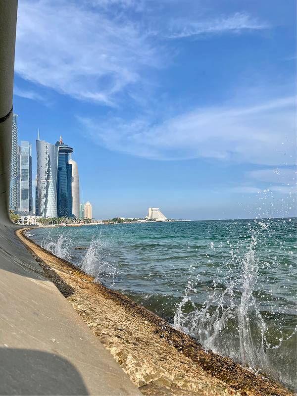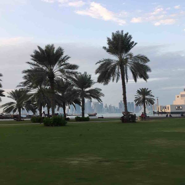 滨海大道(CORNICHE)是多哈市区主要大道之一,全国最漂亮的大道,长约8公里。既是交通干线又是市民休闲、健身主要场所。大道中间有宽阔的绿地,种植着绿茵茵的草坪、常年盛开的鲜花和高大的椰枣树。大道中部有一座较大的街心公园-贝达公园,里面有多处反映海湾阿拉伯国家传统习惯的艺术雕塑,在这里常举行大型的露天庆典活动。政府机构如外交部、经贸部、财政部、内政部、中央银行等和现代化建筑沿海滨大道内侧面海而建。