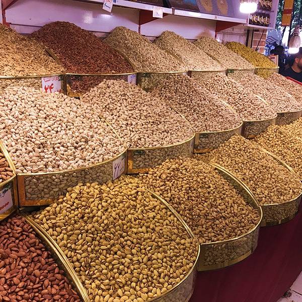 【德黑兰大巴扎】 德黑兰大巴扎是中东地区最大的大巴扎,你一定不会错过,就算不买什么,也来看看吧。就在古勒斯坦宫的旁边,两步路就走到了。 其实这里我感觉就是超级扩大版的义乌商品市场,除了服装,首饰,玩具,香料,还有各类家电,地毯,等等等等,不过最吸引我们的,还是满大街的坚果和干果。 买到了藏红花和盐焗两种不同口味的开心果,虽然味道怪怪的,但是还是挺好吃的,50块人民币可以买一大袋子,吃了好几天。以致于我到现在都觉得不想吃开心果了。