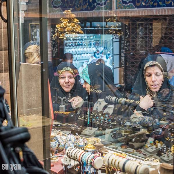 在德黑兰期间,陪小丫头们逛巴扎,她们买绿松石做代购,我跟着他们瞎转悠小丫头们的部分战利品,因为他们的美金没多少了,我便将我剩下的1000美金贡献了出来,按时价兑给了她们,爷就是这么一个仗义的人,当地女性似乎对黄金制品非常感兴趣,也许是黑袍下的金黄色更醒目的缘故吧