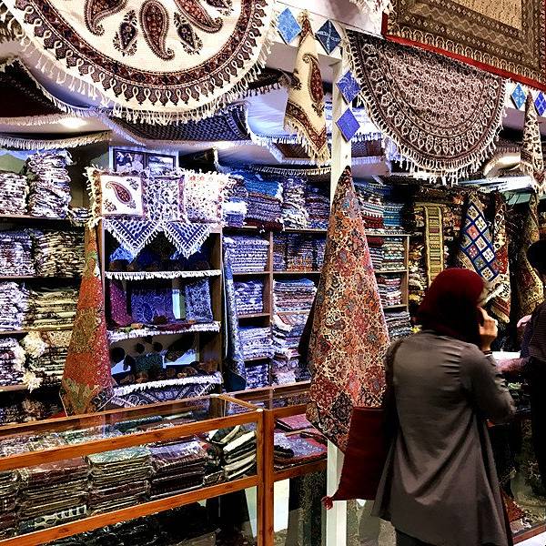 从Golestan宫出来,误打误撞的坐上了环绕皇宫的免费小火车,又误打误撞的到了德黑兰的大巴扎。 哎呀妈呀,这也忒大了吧,即使你沿着一个方向不停的走,估计也要半个小时才能走出去。不过这里的特色除了big也只有big,如果不是破旧的建筑和身边高鼻梁的歪果仁提醒你这是在伊朗,你还以为到了义务,还是十年前的旧版义务。 一个市场里的地毯商跟我们吹嘘说,这里的everthing都来自中国,除了他的地毯。老章嘴上应着心里却想,这还真不好说,别说地毯,你就是要飞毯中国人民也能给你鼓捣出来。