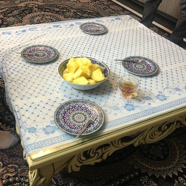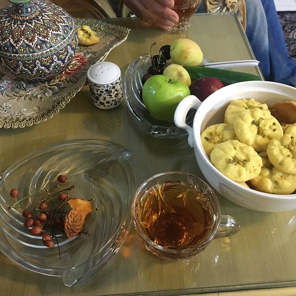 我又开始了自拍模式其实萨德宫没有什么太值得逛的,就是一个富丽堂皇的皇家公园而已(我是这么感觉)我又跑回了bazar,开始了逛逛逛,买买买的节奏后来已经到下午四点,天气实在太热,我就回家了,手上提了一堆买买买的东西回家,一开冰箱,首先来一杯冰镇玫瑰水!据说伊朗的玫瑰水美容养颜各种疗效mohsen哥哥还在为一个纪录片剪辑上面都是他获得大大小小的奖状,由于fatemeh姐姐带着nivad回娘家了,mohsen哥哥不会煮饭,什么也不会,就把我送到他爸爸妈妈家了,正好他的妹妹和妹夫也在家爸爸和妈妈又为我做了丰盛的晚餐,以及各种招待我的水果小吃爸爸妈妈的自己家也很豪华,伊朗的每家每户都有地毯,等我以后买房子装修了,我也要运块伊朗地毯回家伊朗的车厘子很便宜,我吃个没停吃完饭又吃凤梨请看妈妈脸上严肃的表情,事实上在照这张照片的时候,妈妈和这个小姐姐吵了一架,她不肯戴头巾,妈妈是保守派,说必须要戴,两个人争执不休,我特别尴尬,最后我和小姐姐说戴吧,你戴上头巾更好看,而且她露出了手臂,妈妈脸上还是一脸不开心 展开