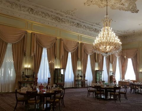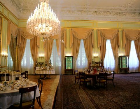 但门票很贵,小的展厅都要收费,一圈都下来要用15万里亚尔。里面有很多小的展厅装饰都非常的豪华这里古木参天,环境很不错,王宫位于半山腰上,院子非常的大,游客不多很幽静。里面有很多小的展厅装饰都非常的豪华。但门票很贵,小的展厅都要收费,一圈都下来要用15万里亚尔。