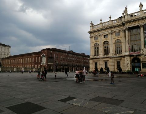 好动的孩子则在广场上尽情撒欢,在乌云密布的天气里,他们的笑脸就成了广场最暖的风景【圣卡罗广场(Piazza San Carlo)】