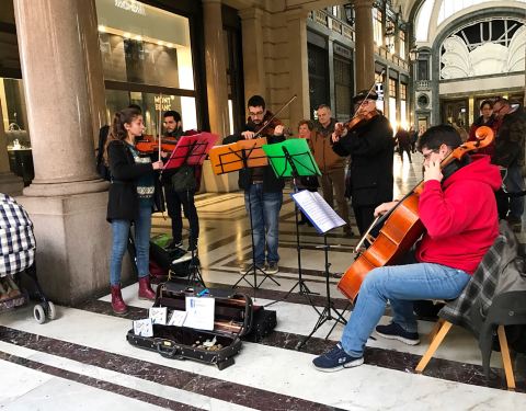 到了休息日,广场和商业街两侧会有许多人卖艺,就我这个外行看来水准都相当不错一个非常大的广场,连接着都灵王宫和商业街,沿着商业街再笔直向前就是火车站。到了休息日,广场和商业街两侧会有许多人卖艺,就我这个外行看来水准都相当不错。有老年合唱团、年轻的乐队、用空桶作为乐器演奏的...一个非常大的广场,连接着都灵王宫和商业街,沿着商业街再笔直向前就是火车站。到了休息日,广场和商业街两侧会有许多人卖艺,就我这个外行看来水准都相当不错。有老年合唱团、年轻的乐队、用空桶作为乐器演奏的艺术家、还有独唱艺人......他们不会让你有求财心切的市侩感,反而更多的是为快乐而表演。拿着一堆硬币一路看演出、一路给自己喜欢的表演献上点支持,逛上一个下午也不会厌倦。 展开