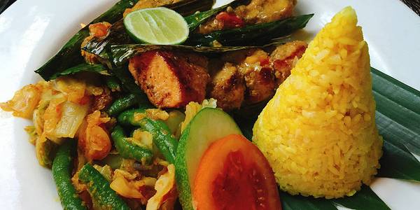 库塔海滩附近的一家餐馆,店内环境舒适,可以在巴厘岛建筑风格的凉亭上享用新鲜的食材。餐厅菜品种类丰富,推荐新鲜味美的香蕉叶烤鱼和香嫩多汁的铁板烤牛肉。