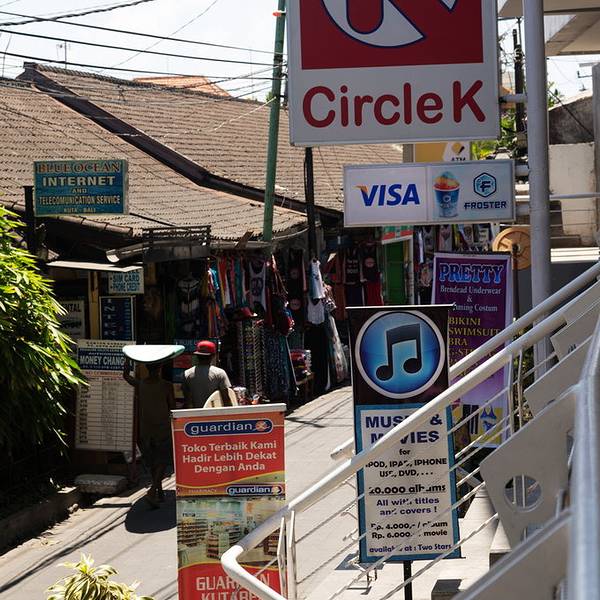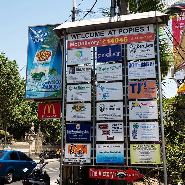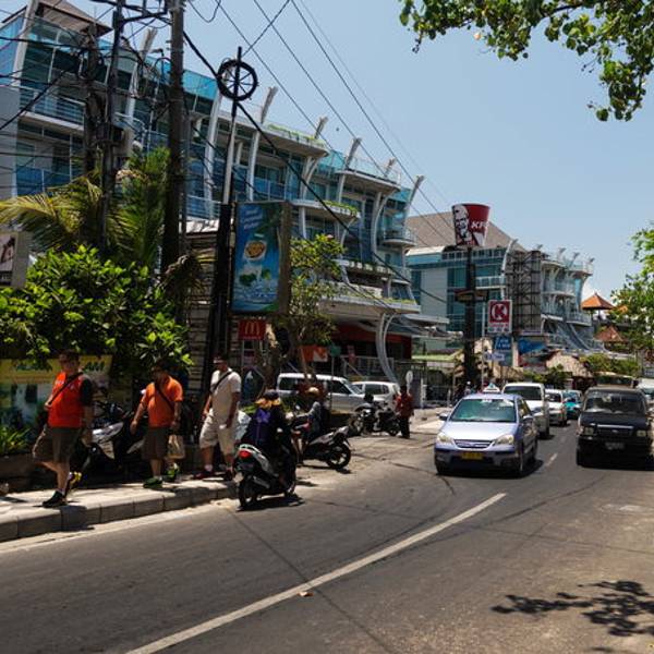 从库塔海滩穿过这条马路,就能走到Poppies I小巷了