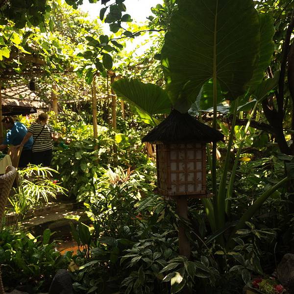 穿过硬石旁边的小巷子就来到了这家颇有名气的Poppies Restaurant。他们家的院子清秀翠绿,要不是第二次来巴厘岛,很难找到这家,你根本想不到在这么不起眼的小巷子里走进一扇小门,还有这么一个别有洞天的小花园...穿过硬石旁边的小巷子就来到了这家颇有名气的Poppies Restaurant。他们家的院子清秀翠绿,要不是第二次来巴厘岛,很难找到这家,你根本想不到在这么不起眼的小巷子里走进一扇小门,还有这么一个别有洞天的小花园。水池与雕塑,小鱼与石子路,处处都很雅致,处处都能感受到巴厘岛独特的艺术气息。虽然不在饭点,但有络绎不绝找来的客人。下着毛毛雨,突然感觉在这样的热带小花园里用餐十分惬意。食物的味道自然没得说,烤猪肋排鲜嫩多汁,肉质有弹性但不柴,嚼起来很香。用完餐继续逛kuta。