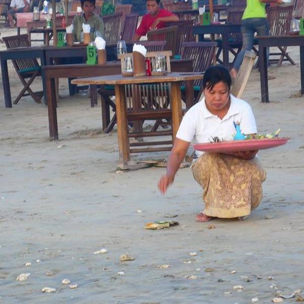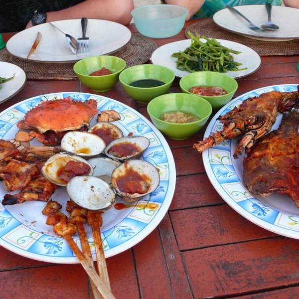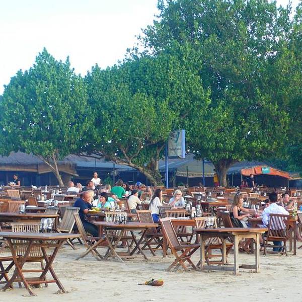 位于金巴兰海滩上,能观赏到漂亮的景致。 nyoman提供优质的海鲜。鱼是最新鲜的。