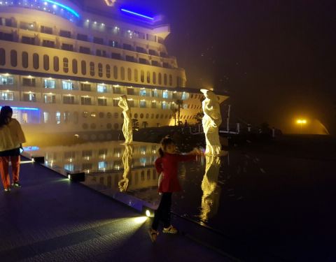 夜景很漂亮!环境很好!有名的邮轮酒店!宝贝很喜欢!很遗憾去的有点早!可是空气质量指数很高环境很好!有名的邮轮酒店!夜景很漂亮!跟亲朋好友一起自驾游!!宝贝很喜欢!去的时候有点冷!到八月份天气变暖可以带上泳衣下海游泳!很遗憾去的有点早!可是空气质量指数很高!!