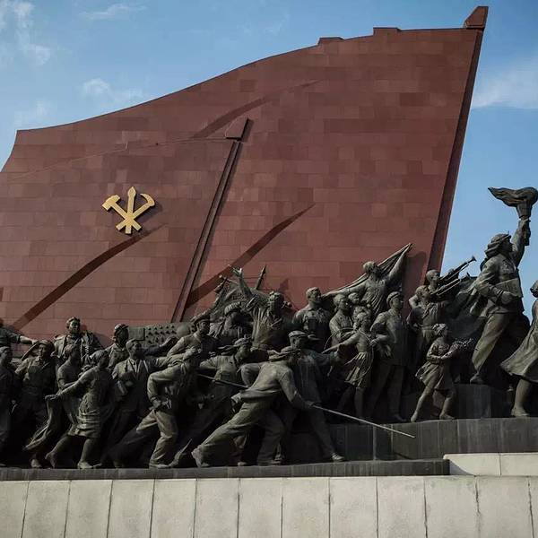 个人崇拜的标志性建筑物。最高的铜像最高的铜像。个人崇拜的标志性建筑物。惯例性的鞠躬、鲜花。