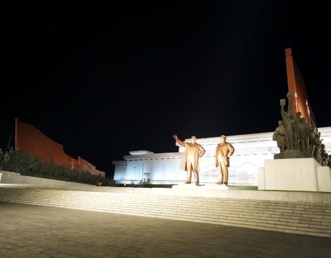 美丽干净的平壤,万寿台两座巨型铜像,气势宏大。普通百姓擦肩而过,熙熙攘攘,朝鲜的神秘化作亲切。