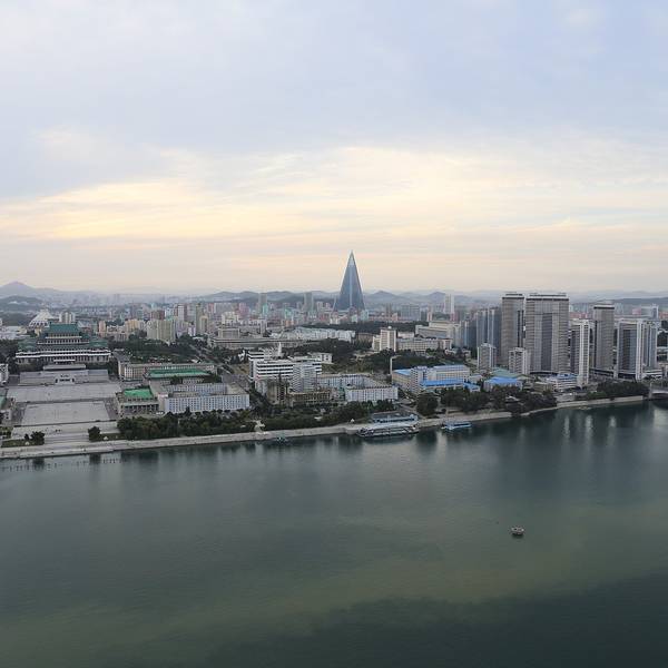 遗憾的是朝鲜为什么不开通大同江的游船游,如果能坐着游轮游览两岸的城市风光一定非常美好近看这个建筑真是,太!丑!了!浪费了钢筋水泥,辜负了蓝天白云。
