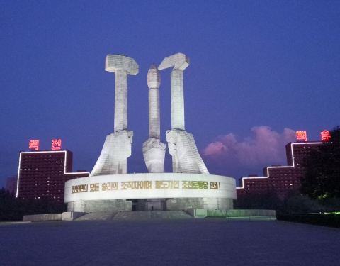 主体思想塔的夜景。至于为什么叫主体思想,我想金老头不是一个合格的文案。。。