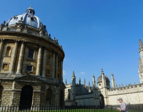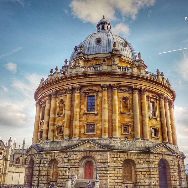 如果说历史不到300年的瑞德克利夫拱形建筑物是牛津的网红景点的话,那么博德利图书馆可是看着网红长大的邻家爷爷。图书馆建造于1602年,现藏书1100万册之多,曾在牛津留学的钱钟书将博德利图书馆戏称为“饱蠹(dù)楼”,形容这是牛津大学的大书虫,在牛津求学期间,钱钟书便像蠹鱼一样终日徘徊在此,废寝忘食地吸收书本的养分。 #馆藏丰富 每周都有4000册书籍被运送至图书馆,而且都需要编排目录,因为英国境内出版的每一本书,博德利图书馆都能得到一册。该图书馆由牛津大学非常主要的3个图书馆组成,包括老博德利图书馆、瑞德克利夫拱形建筑物以及新博德利图书馆。图书馆的藏书管理严格,只能阅览,不能外借,连国王也不能破例。 #瑞德克利夫拱形建筑物 瑞德克利夫拱形建筑物是图书馆的医学和科学书籍馆,建于1749年,这座优美的巴洛克建筑已经成为牛津的标志性建筑之一。