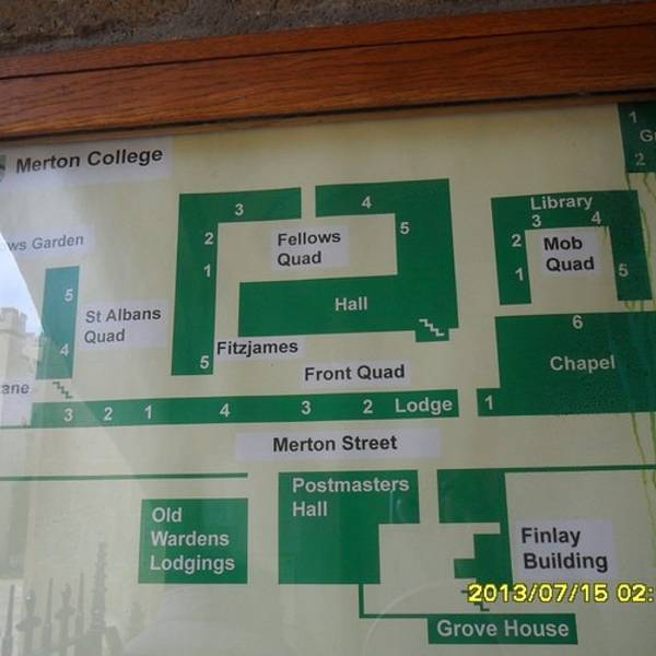 默顿学院门票4胖儿童减半,只给了一张黑白打印的纸件资料,再无其他,那我们就只好顺路前行了。进来参观的人很有限,不一会儿偌大的庭院就只剩下我们娘俩了。一进门就是个小的庭院,四周被古老的、而且有韵律感的建筑包围,穿过其中一面的建筑来到了另一个庭院,我发现这样的建筑格局和我们中国的四合院真的很相似,一进一进地,只不过英国的建筑群的“进”不是从北向南一字儿铺排开去的,而是有可能向东、或者向西,相同的是二者都是方方正正、规规矩矩的,还有个不同就是英国的学院建筑都带一个礼拜堂(CHAPEL)。我们今天来参观的默顿学院就是四“进”的,从平面图上看,每一进都由各自的功能,在一个过道中又一次在布告上发现了中国学子的姓名。 展开