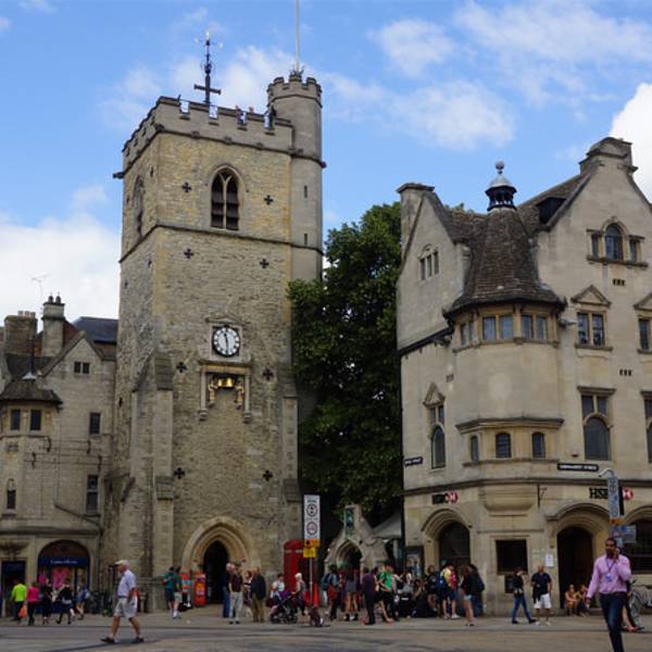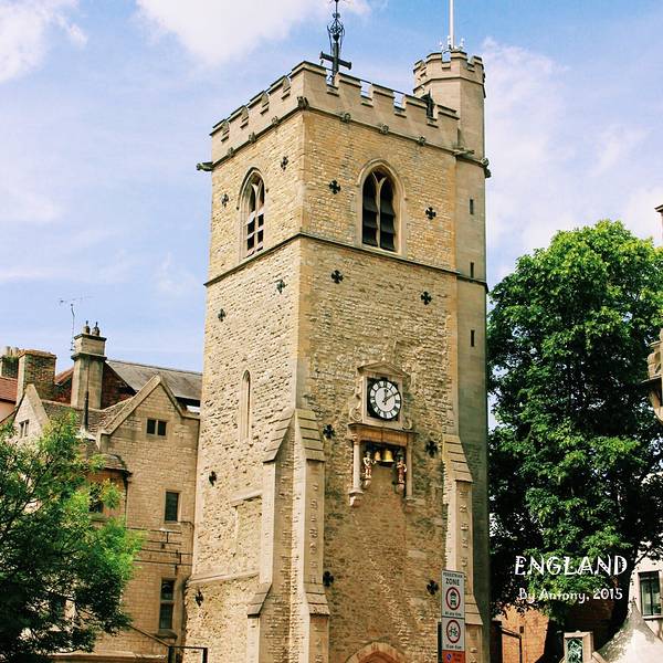 Carfax是十字路口的意思,这里是牛津的市中心,也是圣马丁教堂目前仅存的遗迹。塔东面的墙上有面大钟,每15分钟敲响一次。
