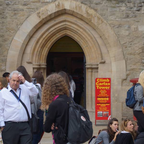 著名的卡尔法克斯钟塔有部分在改造,是牛津城里面最古老的钟楼