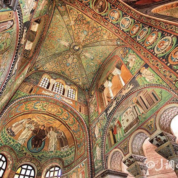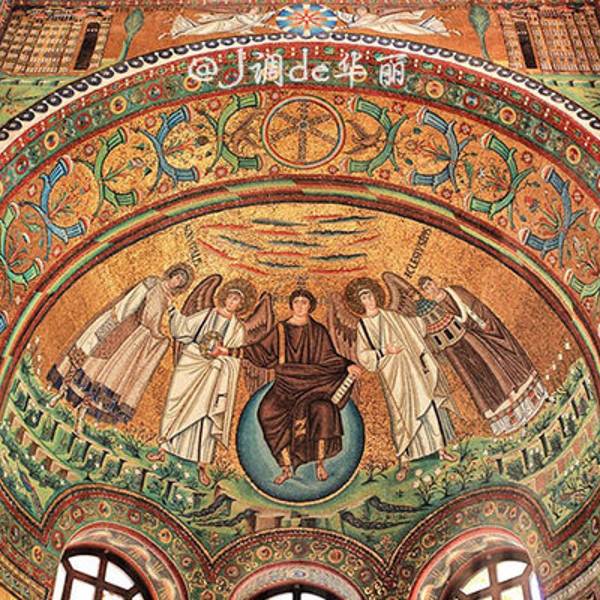 圣维塔莱教堂无论从色彩还是从马赛克壁画的题材方面都具有拜占庭建筑梦幻般华丽的风格,有“西方的圣索菲亚”之称。我以前曾写过一篇土耳其伊斯坦布尔的圣索菲亚大教堂。
