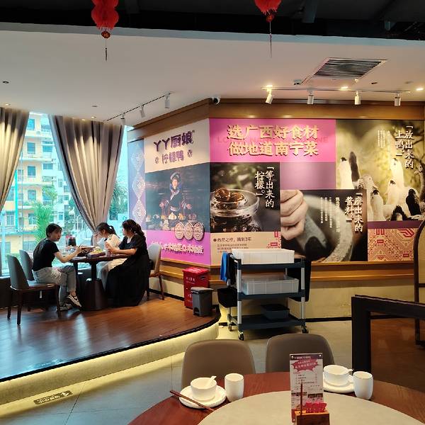 听说在南宁旧工人文化宫,现在的喜荟天地二楼,有一家丫丫厨娘柠檬鸭,赶紧过去看看。 这家店可以哦,位置好,装修新颖,原来开业才百年,一切都那么新,看着很舒心。